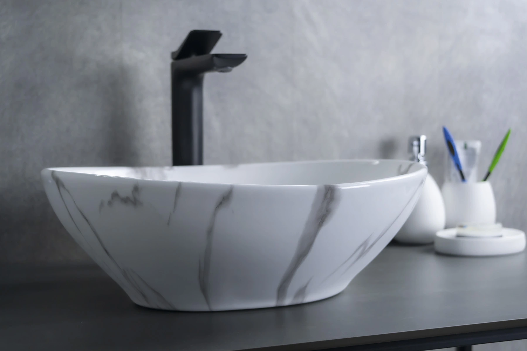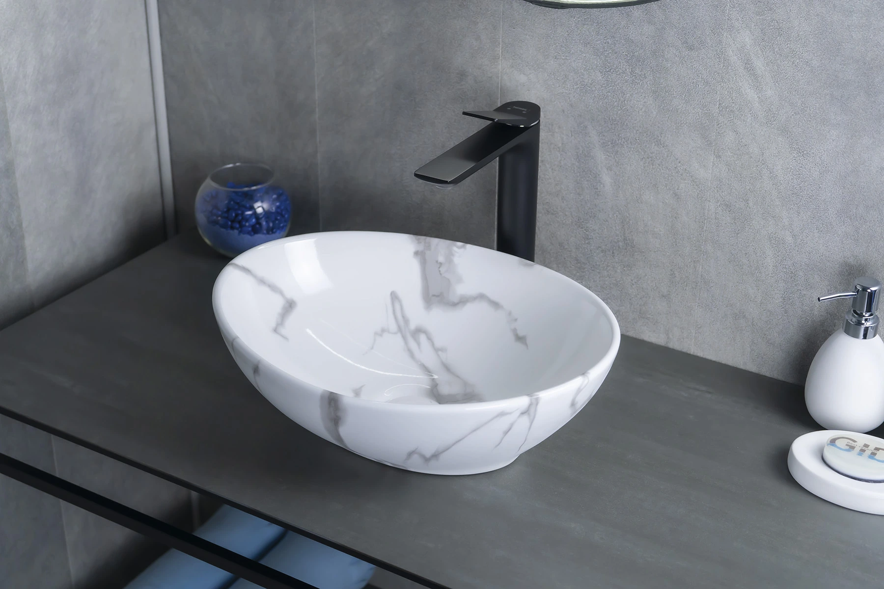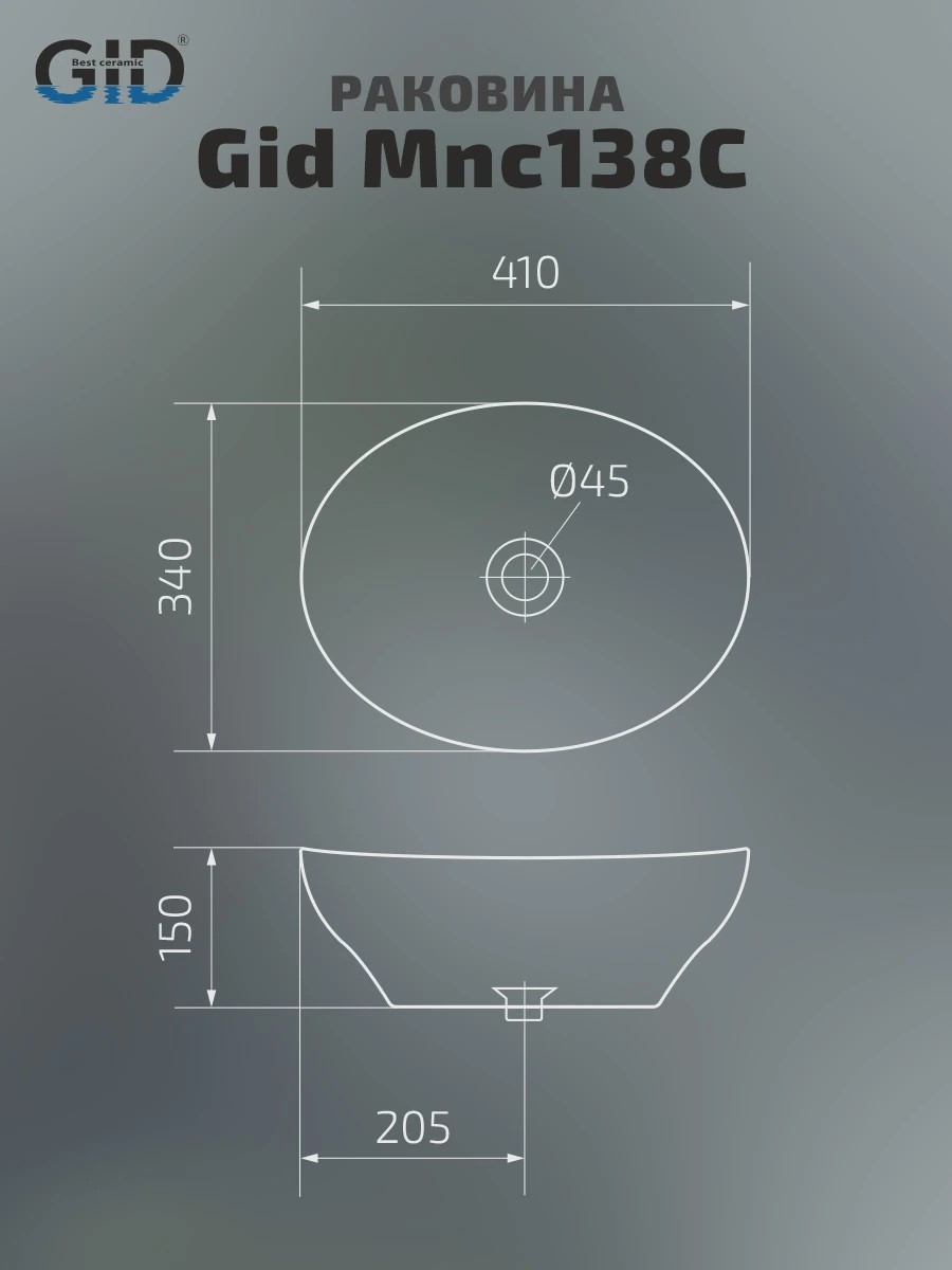 —Раковина керамическая Gid Lago 54473 40х30 накладная цвет многоцветный без отверстий под смеситель