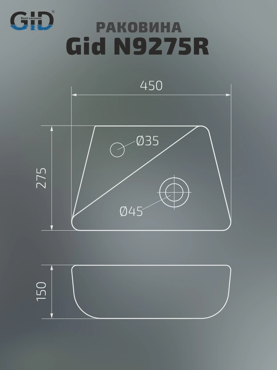 Раковина керамическая Gid Suspendido 61107R 50х30 подвесная цвет белый 1 отверстие под смеситель