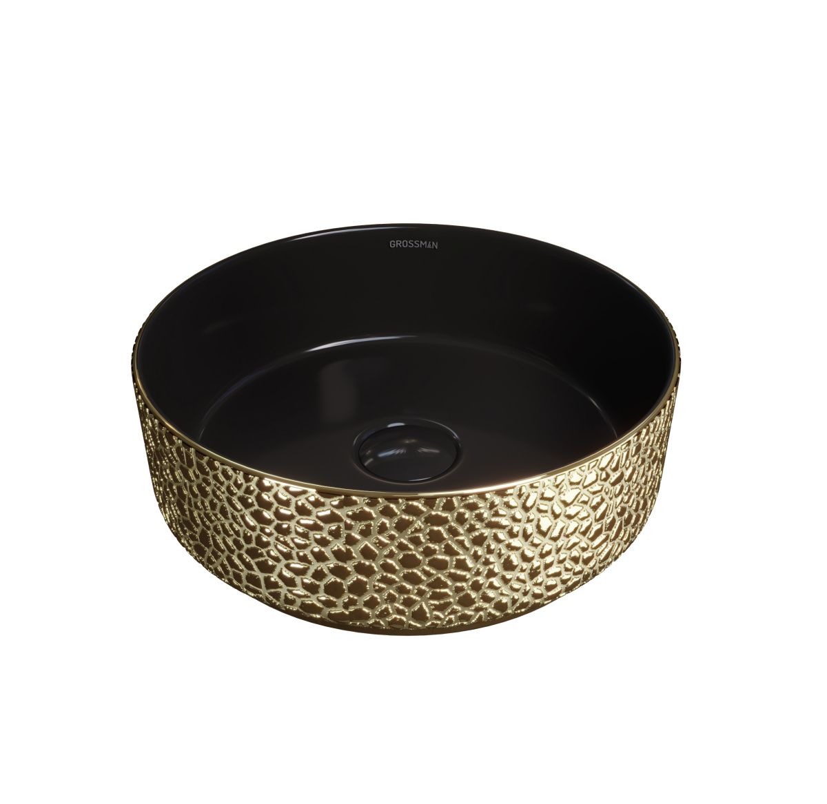 Раковина из сантехнического фаянса Grossman Color GR-5010GBL 40х40 накладная цвет черный/золото без отверстий под смеситель