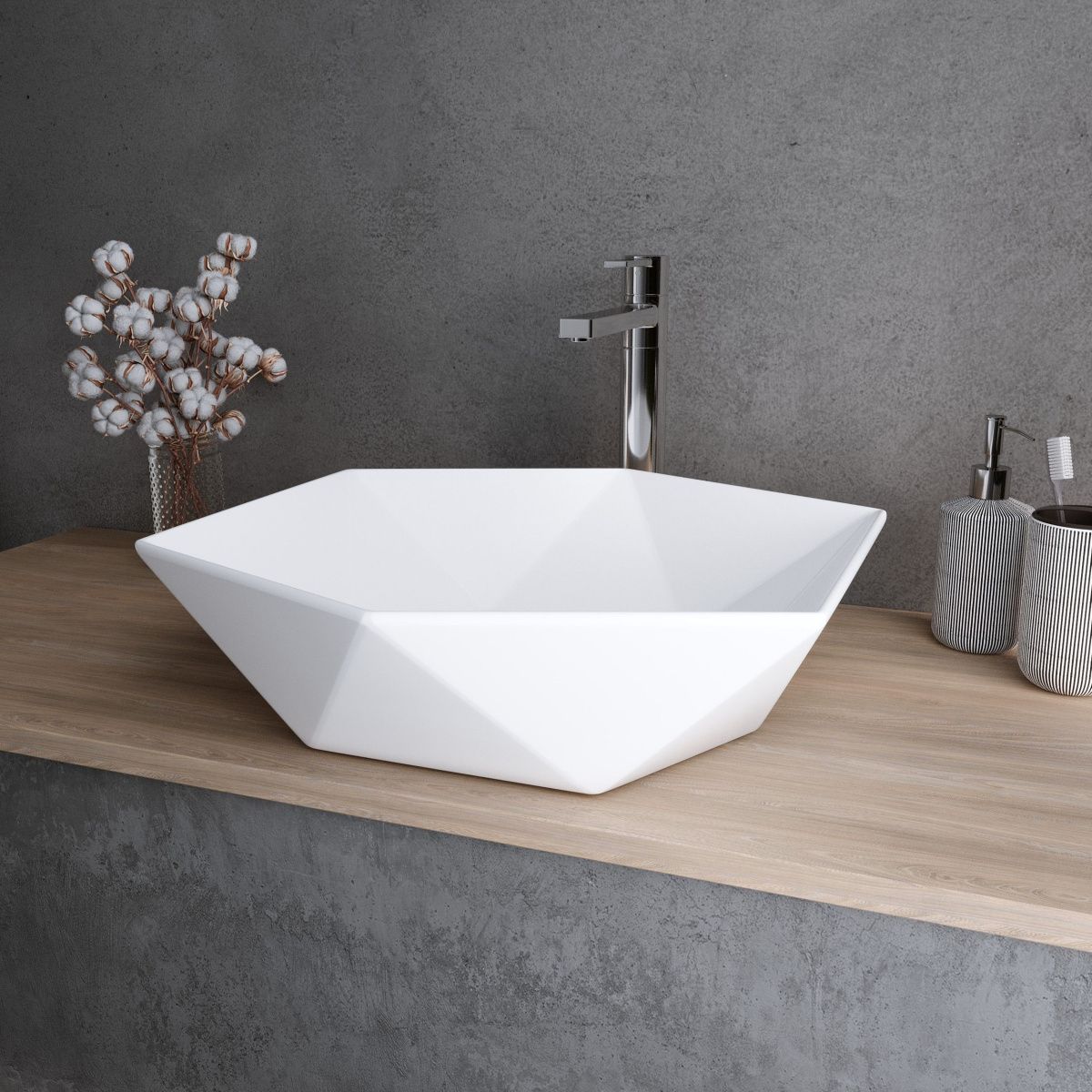—Раковина из сантехнического фаянса Grossman GR-3029 50х50 накладная цвет белый без отверстий под смеситель