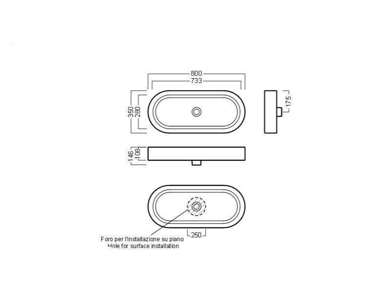 —Раковина из сантехнического фаянса Hatria AREA Y0UF01 80х40 накладная цвет белый без отверстий под смеситель