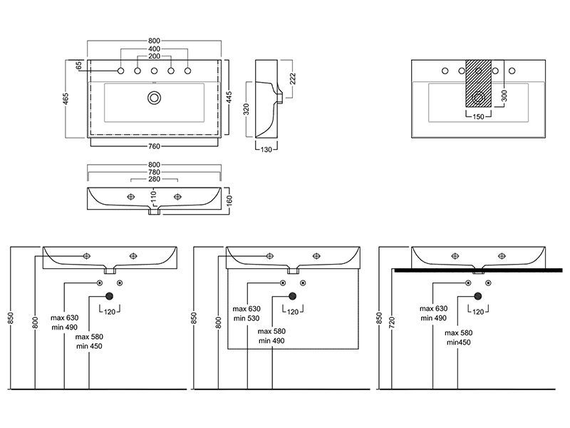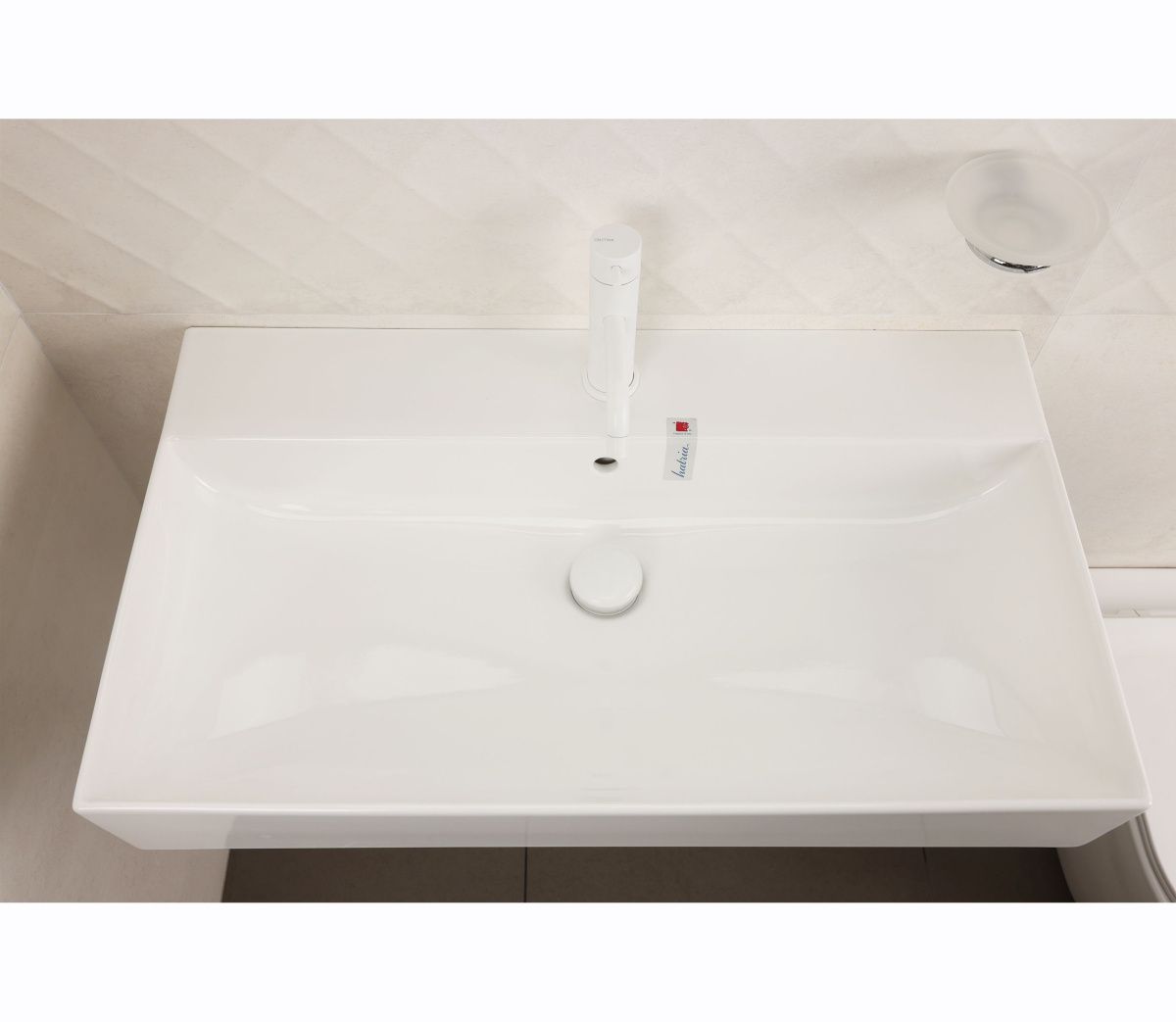 Раковина подвесная или встраиваемая в мебель HATRIA BAHIA_13 BH0800465011TS, одно отверстие для смесителя по центру, с отверстием перелива, размер 80х46.5x13 см, белая. Крепления, донный клапан, сифон, полотенцедержатель, структура под раковину заказывается отдельно.