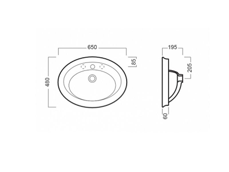 Раковина встроенная HATRIA DOLCEVITA Y0PL01, размер 65х48 см, цвет белый. Раковина поставляется под смеситель на одно отверстие, по запросу  - на три отверстия. Устанавливается на столешницы, подстолья и мебель. Донный клапан и сифон приобретаются отдельно.