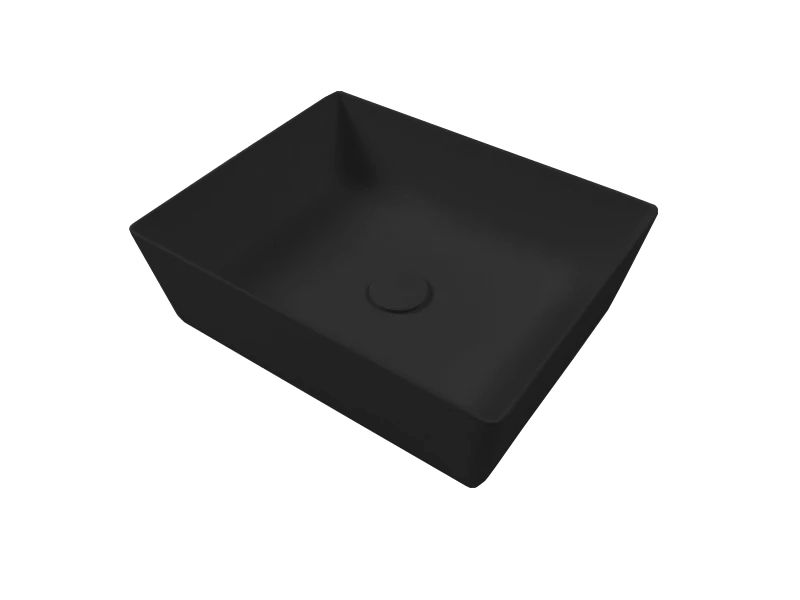 Раковина накладная HATRIA HAPPY HOUR A0Y1VH02 с тонкими стенками, без отверстий для смесителя, без перелива, размер 50x38 см, цвет черный матовый. Донный клапан и сифон приобретаются отдельно.