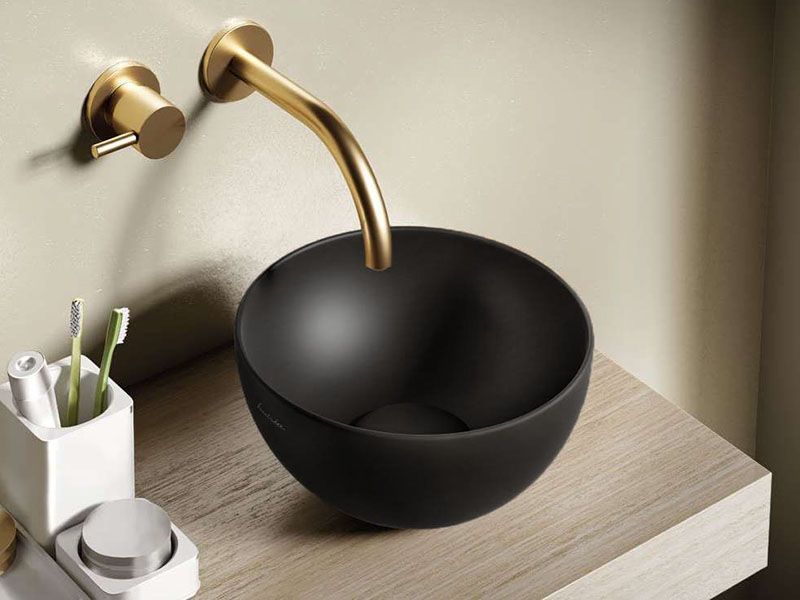 Раковина накладная HATRIA HAPPY HOUR A0Y5A502, без отверстий для смесителя, без перелива, диаметр 25 см, цвет черный матовый. Донный клапан и сифон приобретаются отдельно.
