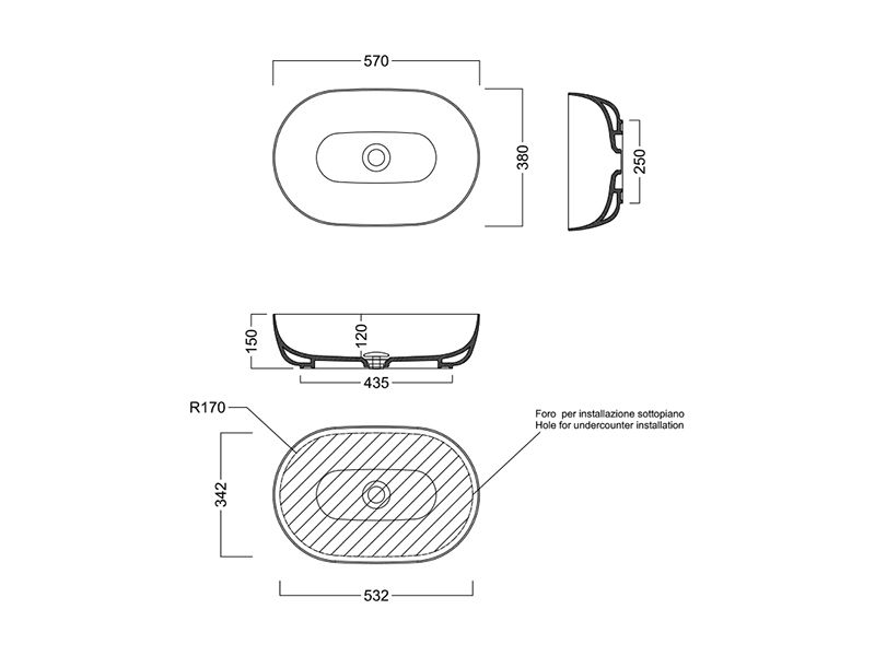 Встраиваемая под столешницу раковина HATRIA HAPPY HOUR Y8AQ01 имеет овальную форму и размеры 57 х 38 x 15,5 см. Она выполнена из фаянса и имеет белый цвет, что позволяет ей гармонично вписаться в любой интерьер. Раковина не имеет отверстия под перелив и плоскости под смеситель, что делает ее более функциональной и удобной в использовании.