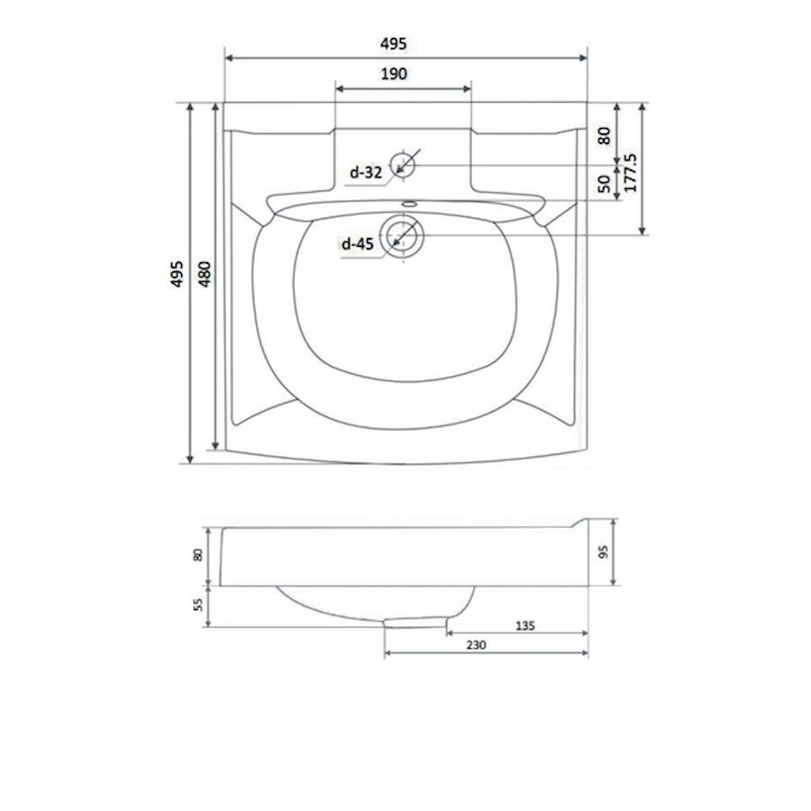 —Раковина из искусственного камня Altasan KOMPAKT UPP50s 50х50 над стиральной машиной цвет белый 1 отверстие под смеситель