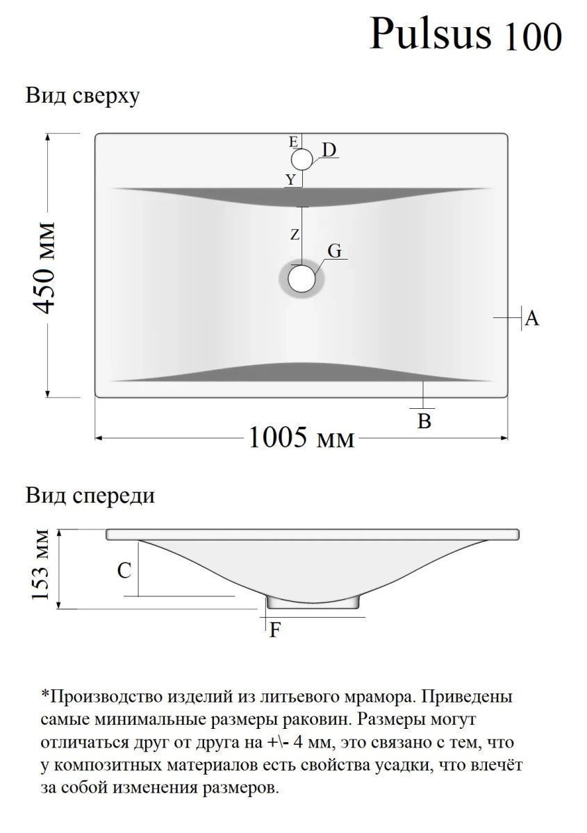 —Раковина из искусственного камня Velvex PULSUS rkPUL.100-81 100х50 накладная цвет белый 1 отверстие под смеситель