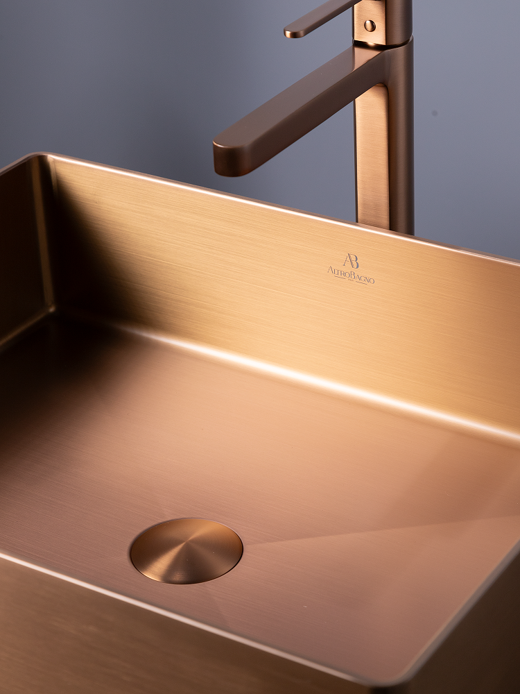 —Раковина из нержавеющей стали AltroBagno Accordo AltroBagnoAccordo001011RaSp 50х40 накладная цвет медь