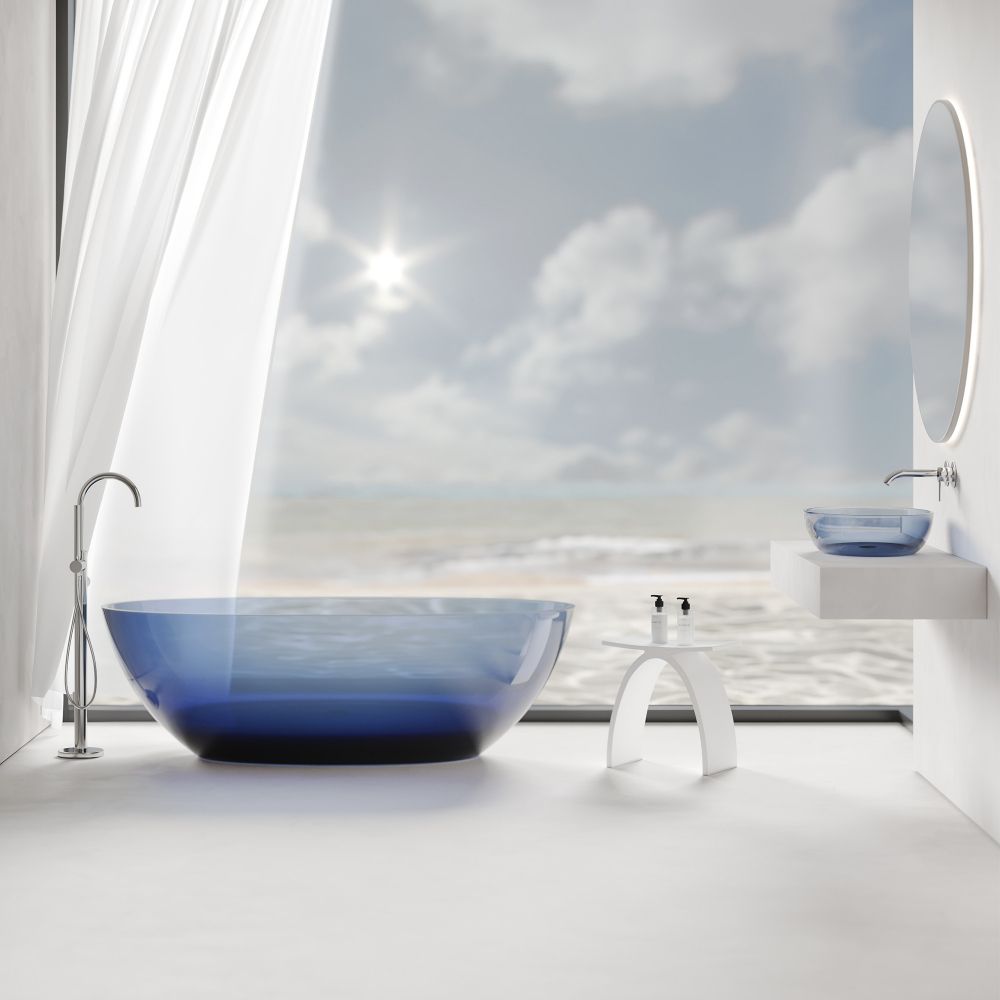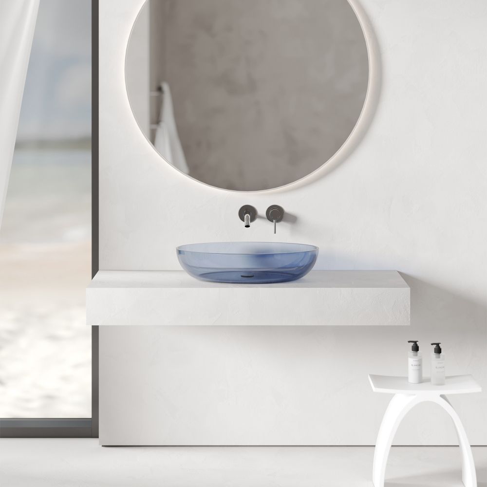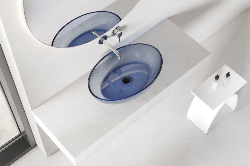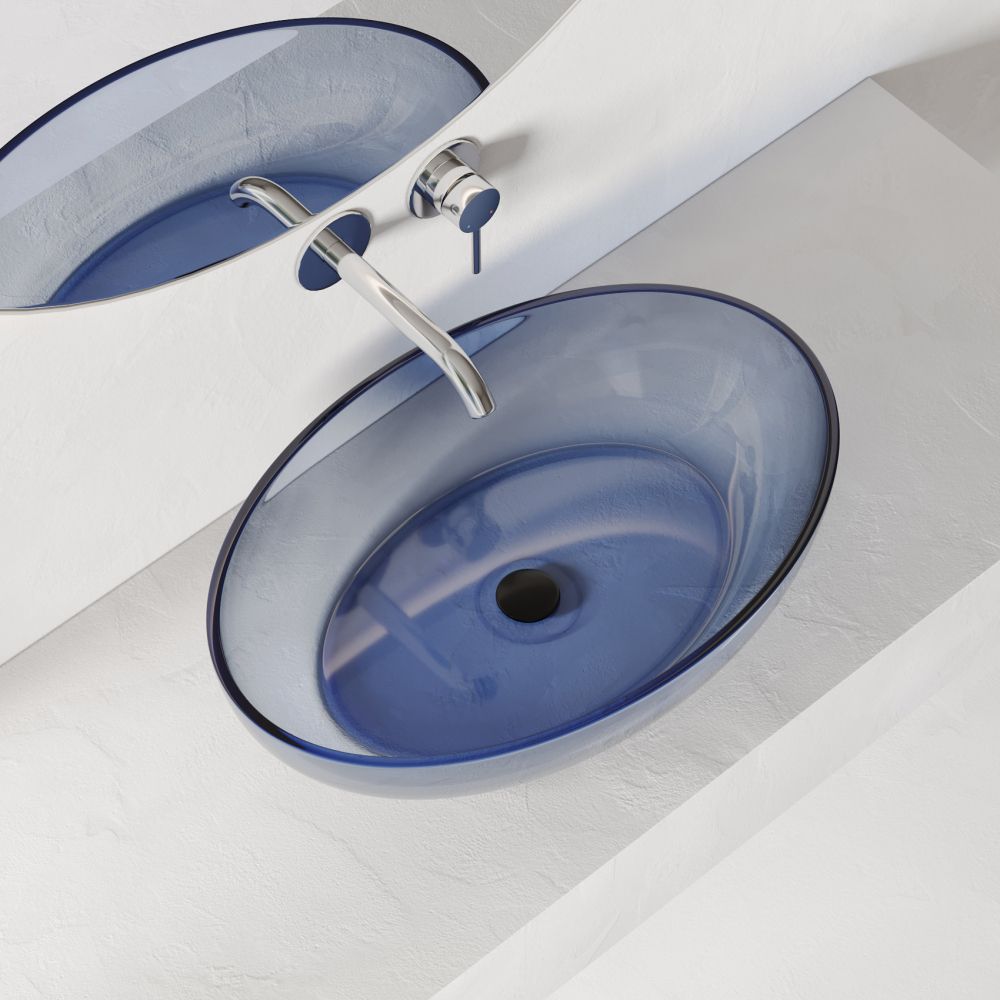 —Раковина из полиэфирной смолы Abber Kristall AT2801Saphir 60х40 накладная цвет синий без отверстий под смеситель