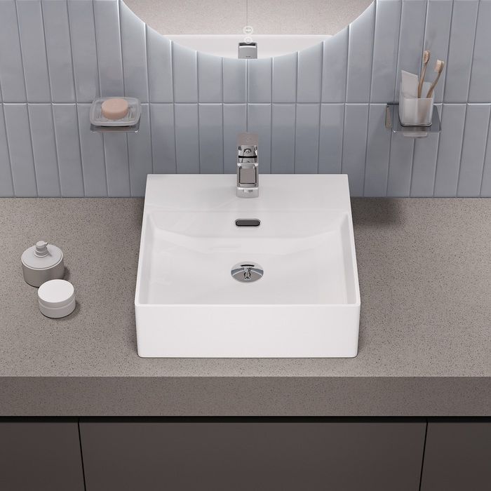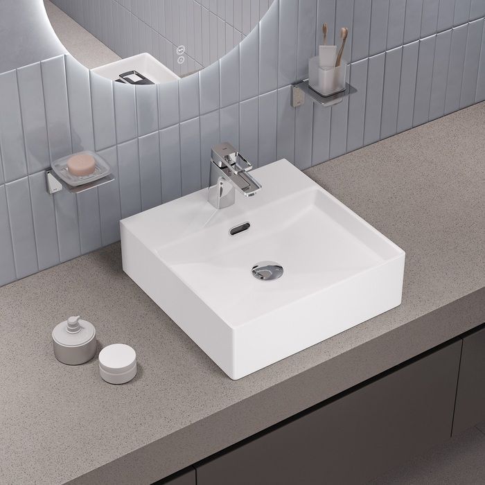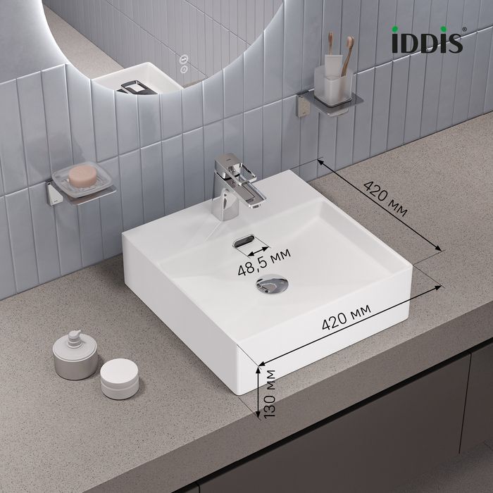 —Раковина из сантехнического фарфора Iddis Bild BILWS42i27 40х40 полувстраиваемая цвет белый 1 отверстие под смеситель