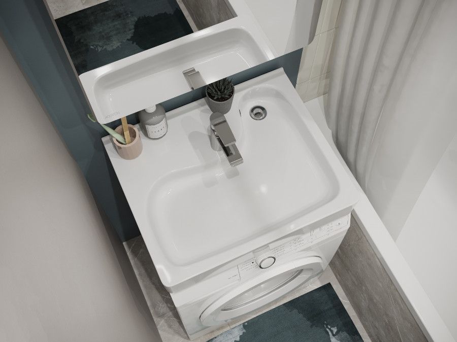 —Раковина из сантехнического фарфора Santek Клио 1WH501770 52х60 над стиральной машиной цвет белый 1 отверстие под смеситель