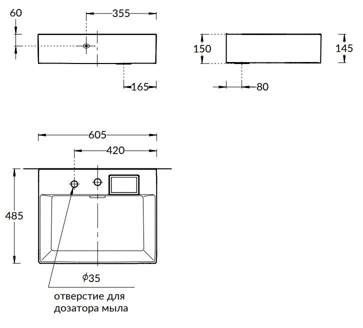 Раковина выполнена  в современном геометрическом дизайне, чистота которого усилена благодаря Beauty Drain – технологии невидимого слива, который смещён из центра чаши к её задней стенке.