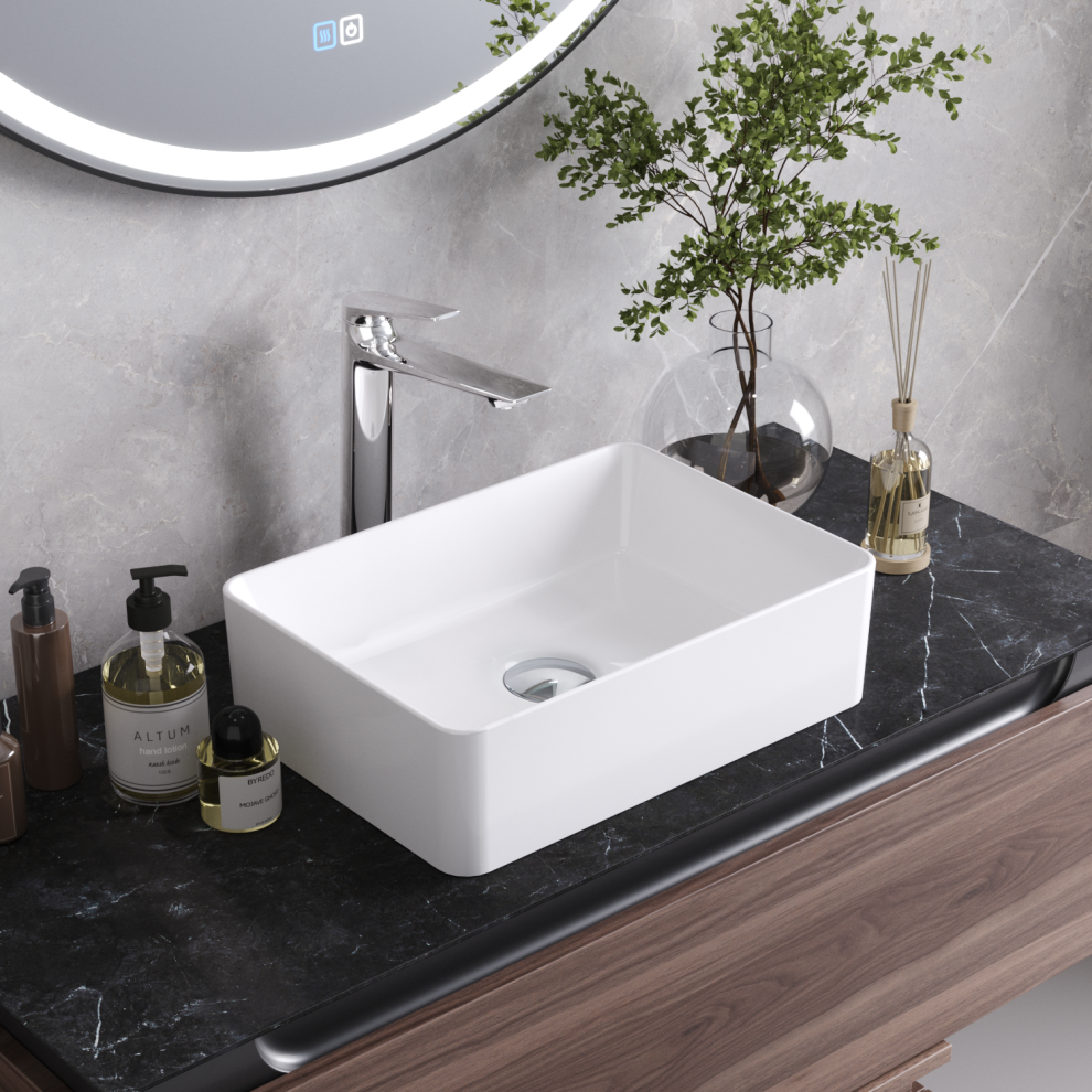 Раковина керамическая Cezares CZR-6596 40х30 накладная цвет белый без отверстий под смеситель