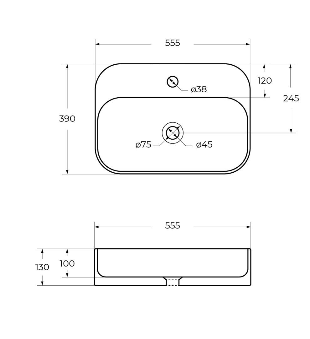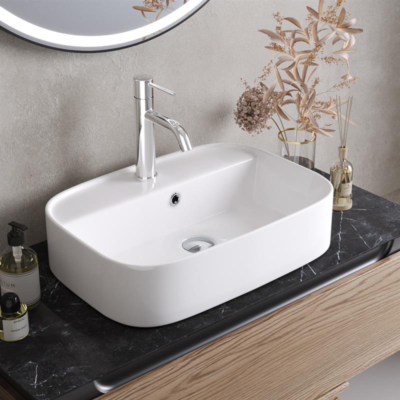 —Раковина керамическая Cezares CZR-6616 60х40 накладная цвет белый 1 отверстие под смеситель