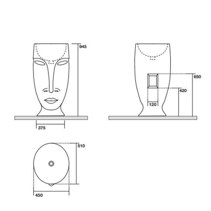 —Раковина из сантехнического фарфора Kerasan Artwork 474086 50х50 напольная цвет белый/серебро без отверстий под смеситель