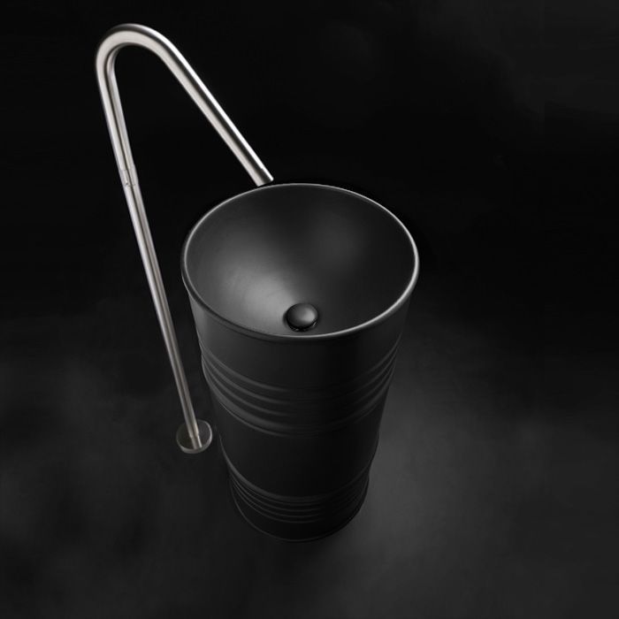 —Раковина из сантехнического фарфора Kerasan Artwork 4742K31 50х50 напольная цвет черный без отверстий под смеситель