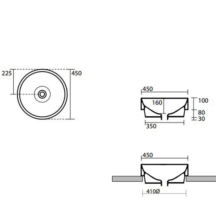 —Раковина керамическая Kerasan CENTO 355781 50 см накладная цвет коричневый без отверстий под смеситель