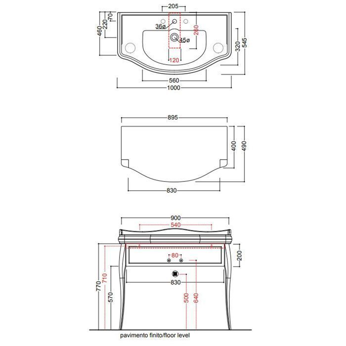 —Раковина из сантехнического фарфора Kerasan Retro 105001*3 100х50 подвесная цвет белый 3 отверстия под смеситель