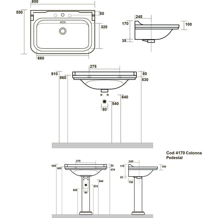 —Раковина из сантехнического фарфора Kerasan Waldorf 4141K1bi/cr*3 80х55 подвесная цвет белый/хром 3 отверстия под смеситель