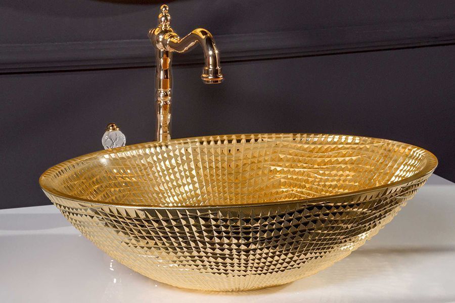 —Раковина хрустальная Boheme NeoArt 814 50х40 накладная цвет золото без отверстий под смеситель