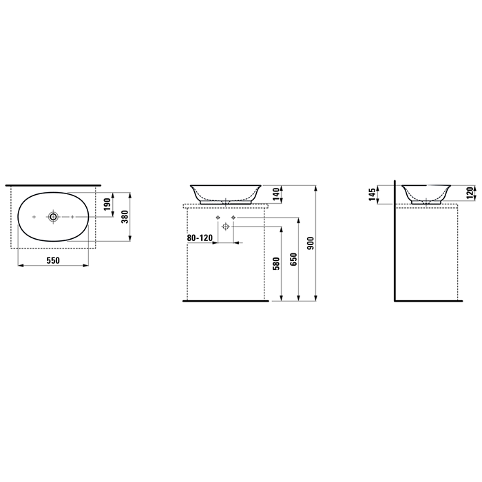 —Раковина керамическая Laufen New Classic 8.1285.2.400.112.1 60 см накладная цвет белый без отверстий под смеситель