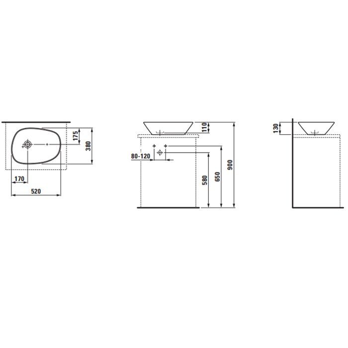 —Раковина керамическая Laufen Palomba 8.1680.2.400.112.1 50 см накладная цвет белый без отверстий под смеситель