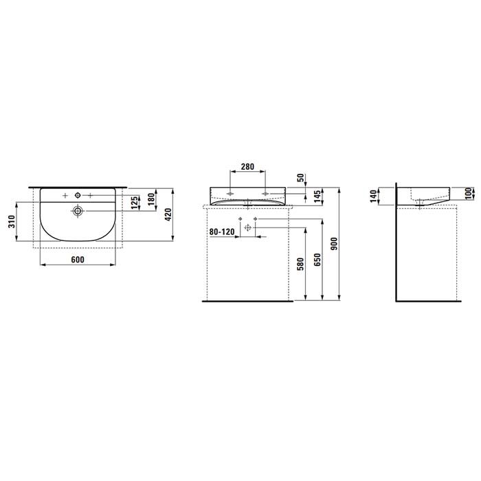 —Раковина керамическая Laufen Sonar 8.1634.2.000.104.1 60 см накладная цвет белый 1 отверстие под смеситель