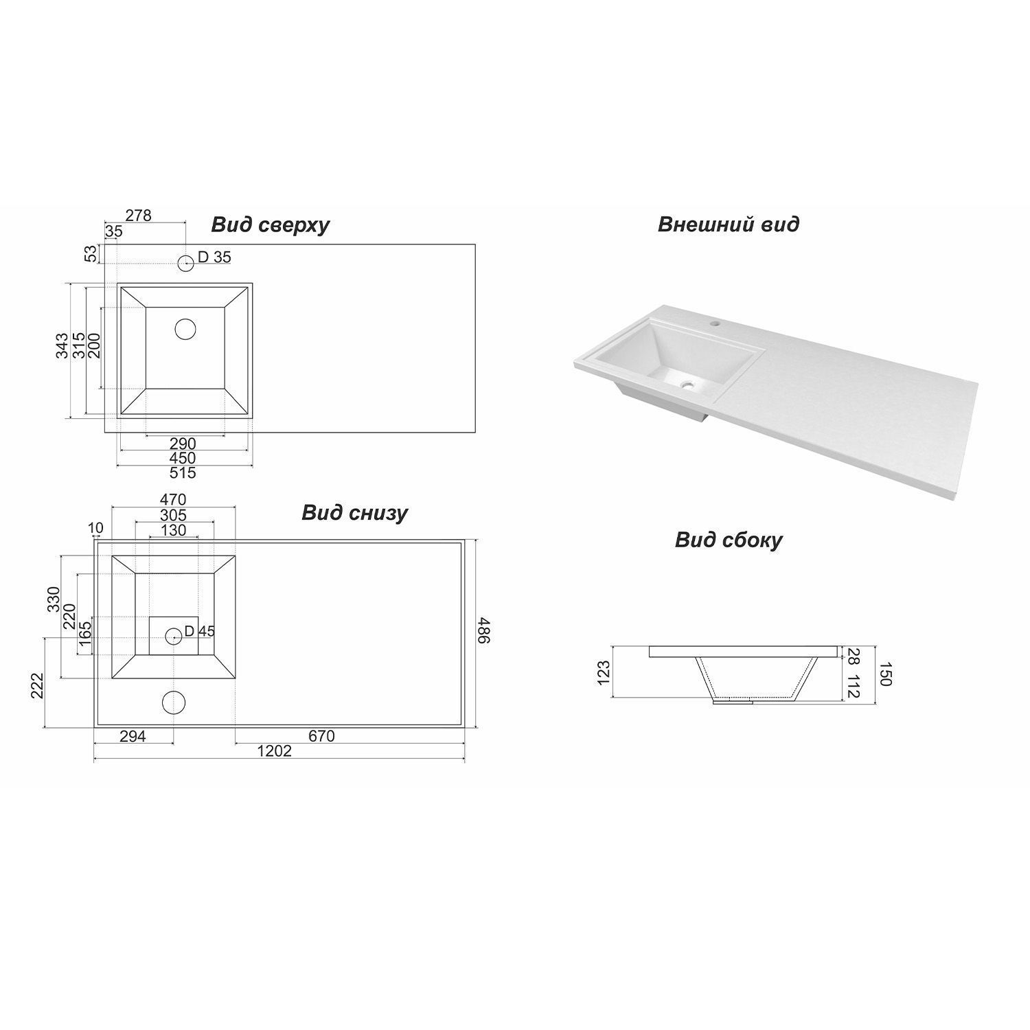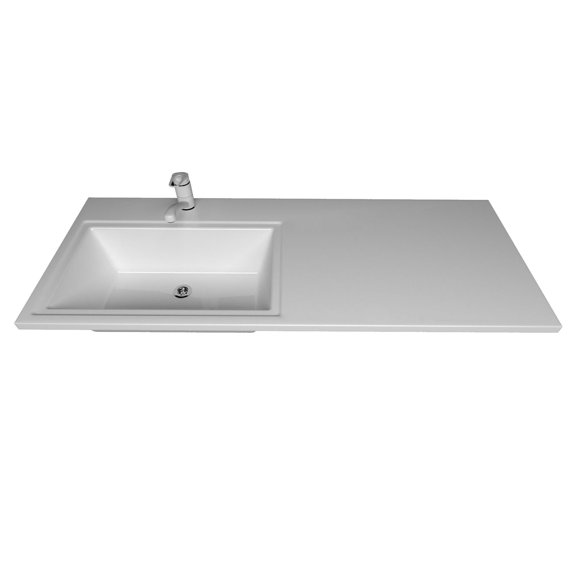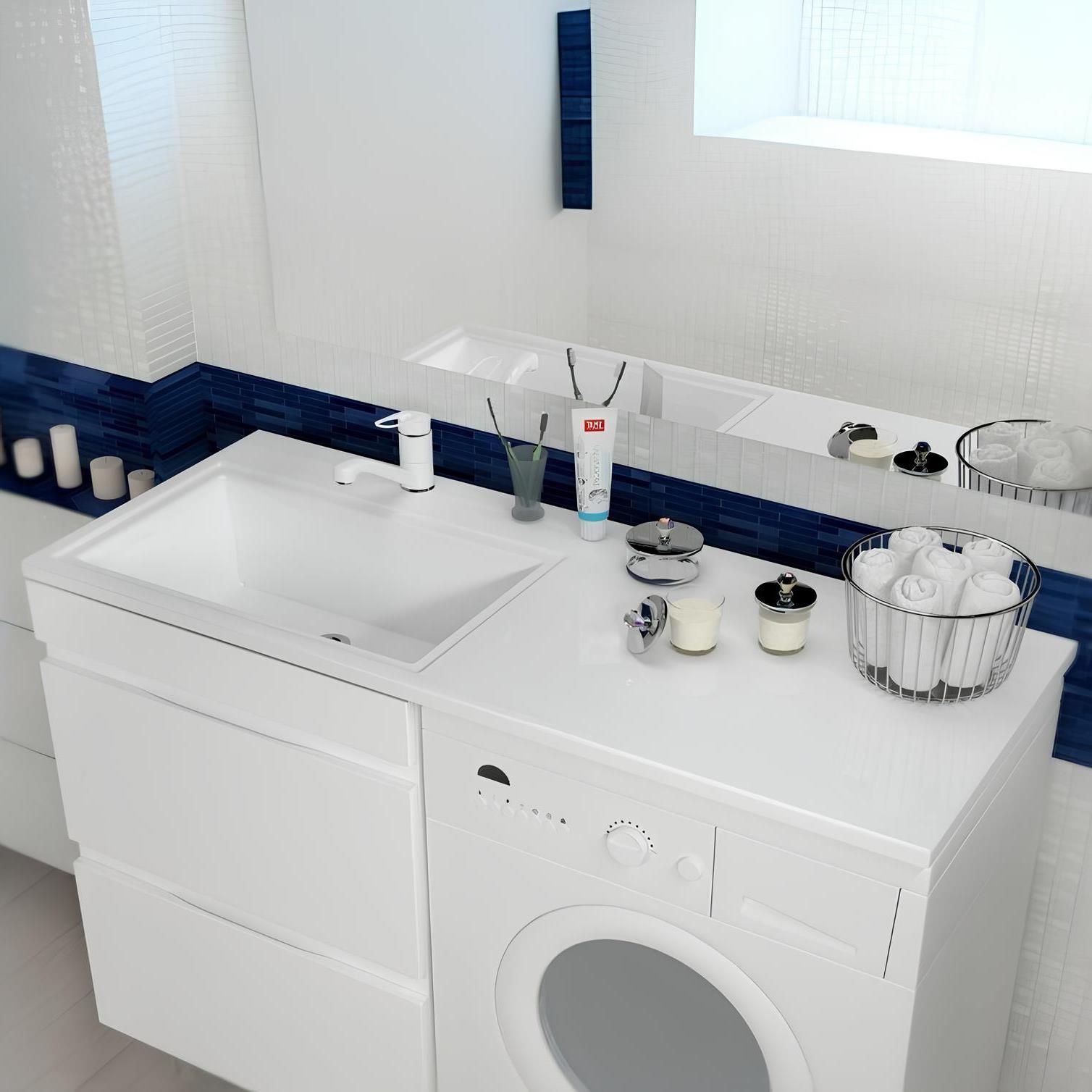 Одно отверстие под смеситель по центру чаши. Подходит к стиральным машинам глубиной до 470 мм.