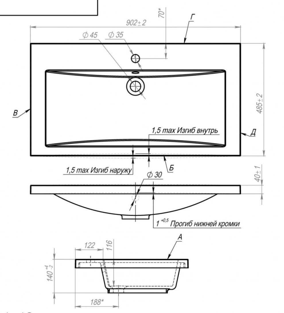 Диаметр сливного отверстия, см