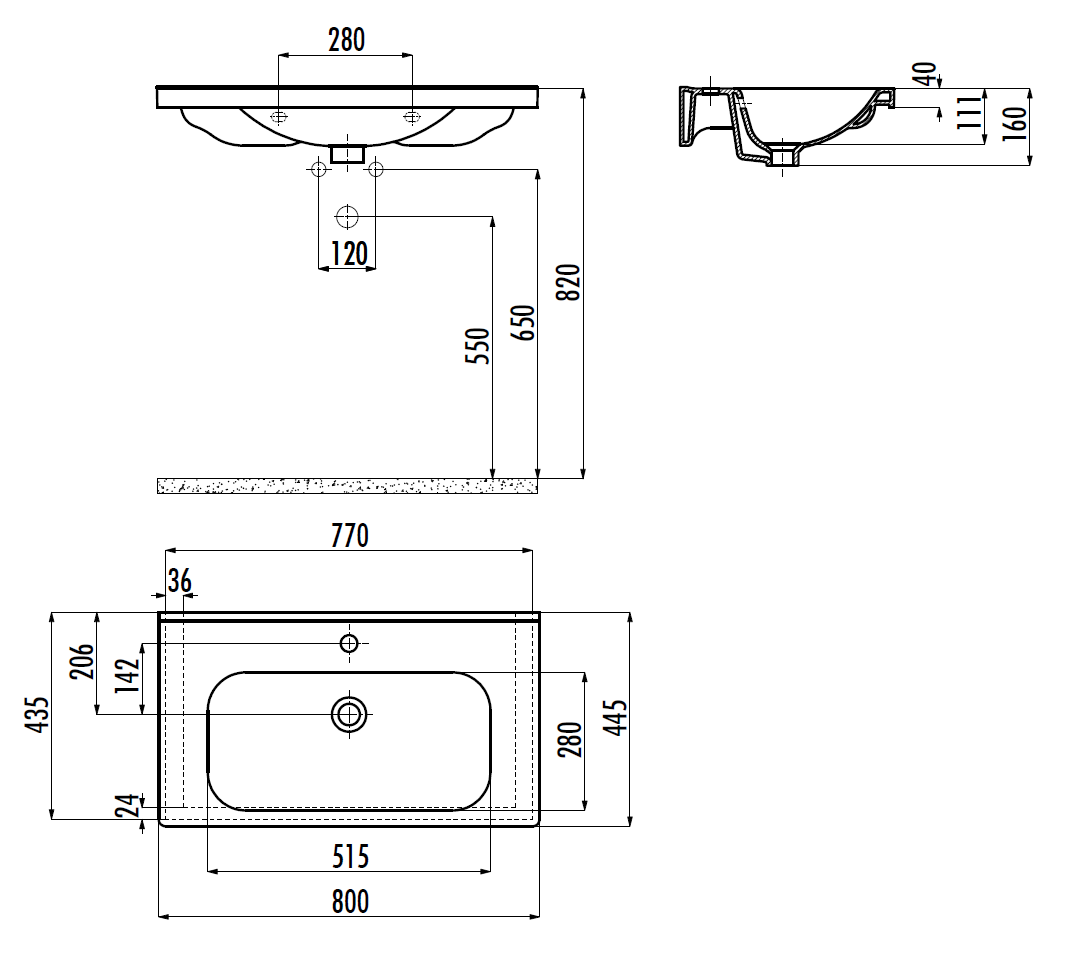 —Раковина из сантехнического фарфора Creavit Eksen EK080-00CB00E-0000 80х40 накладная цвет белый