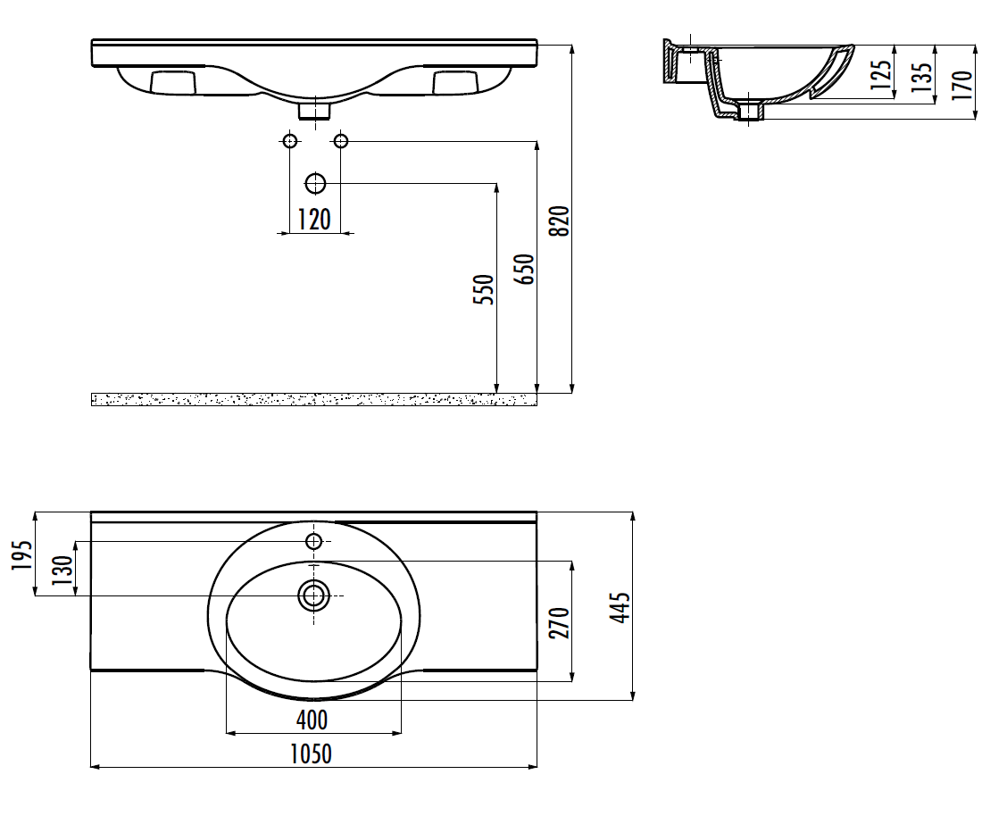 —Раковина из сантехнического фарфора Creavit ETOL ET205-00CB00E-0000 110х40 накладная цвет белый