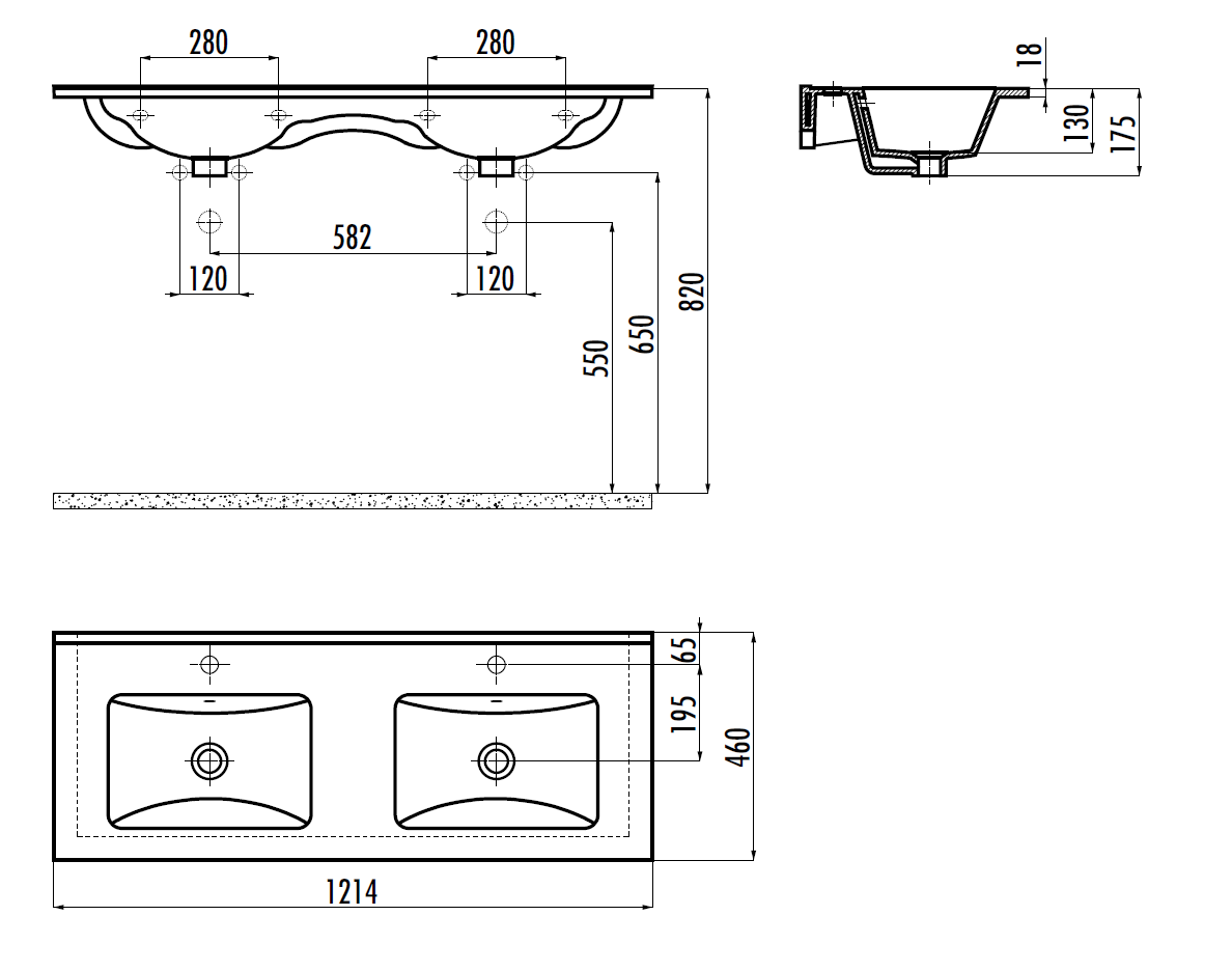 Раковина из сантехнического фарфора Creavit Su SU121-00CB00E-0000 120х50 накладная цвет белый 2 отверстия под смеситель