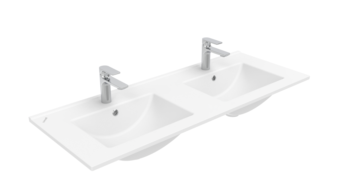 —Раковина из сантехнического фарфора Creavit Su SU121-00CB00E-0000 120х50 накладная цвет белый 2 отверстия под смеситель