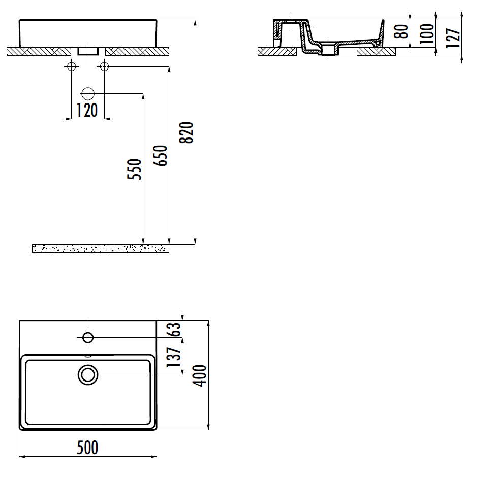 —Раковина из сантехнического фарфора Creavit Volga VX242-00CB00E-0000 50х40 накладная цвет белый