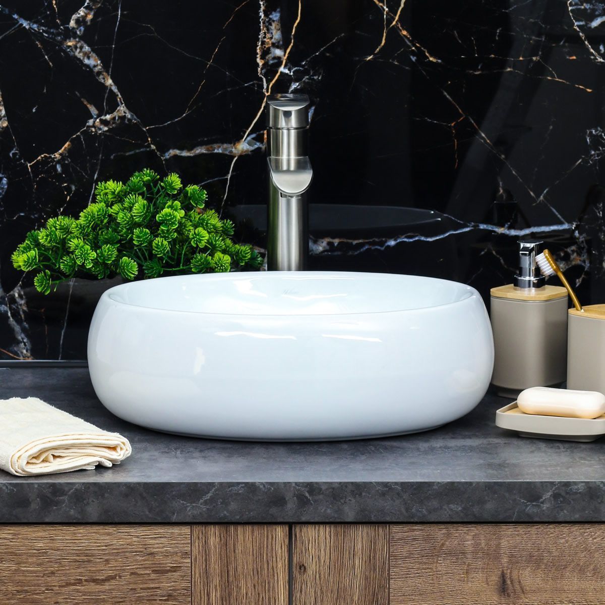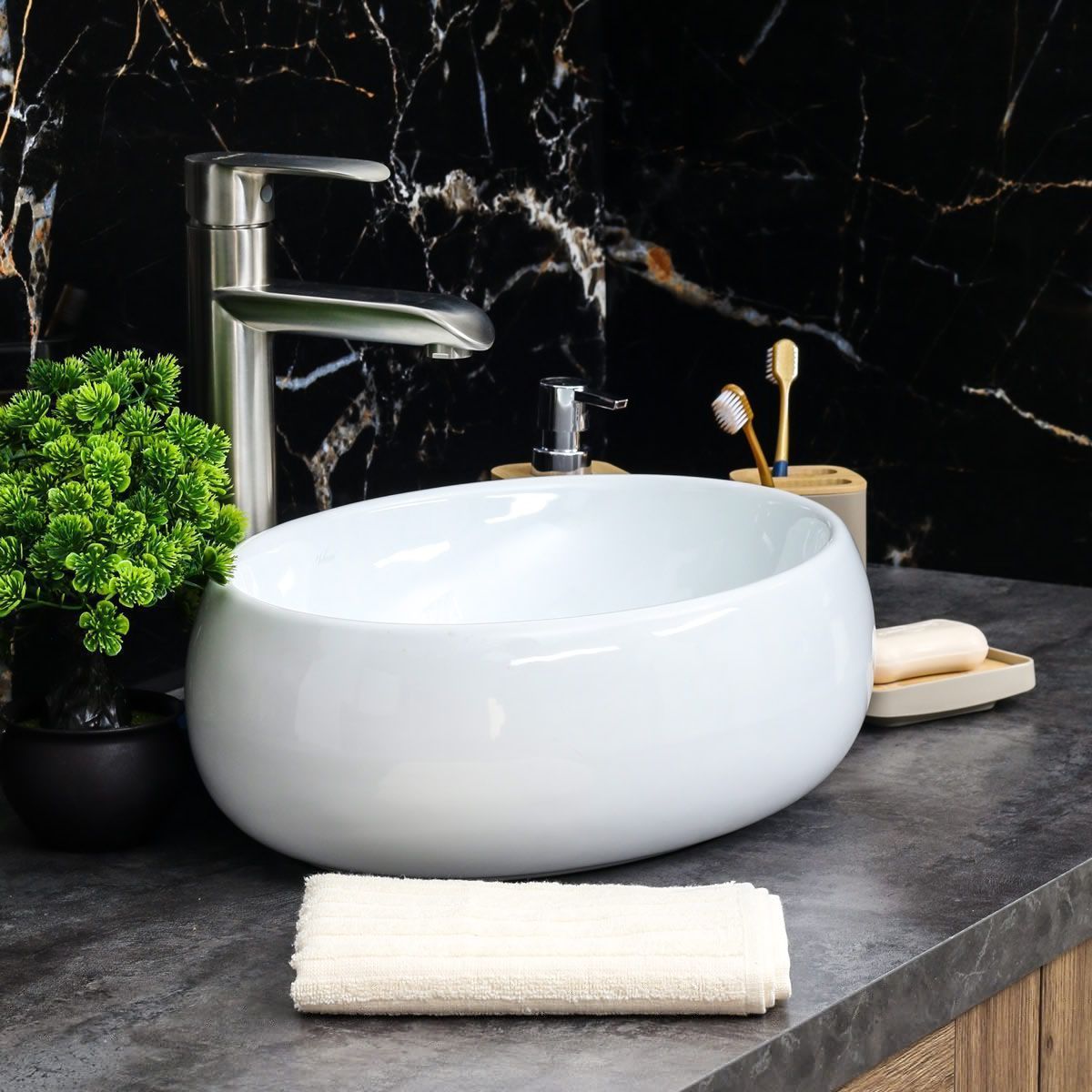 —Раковина из сантехнического фарфора Melana 320303-805 40х30 накладная цвет белый без отверстий под смеситель
