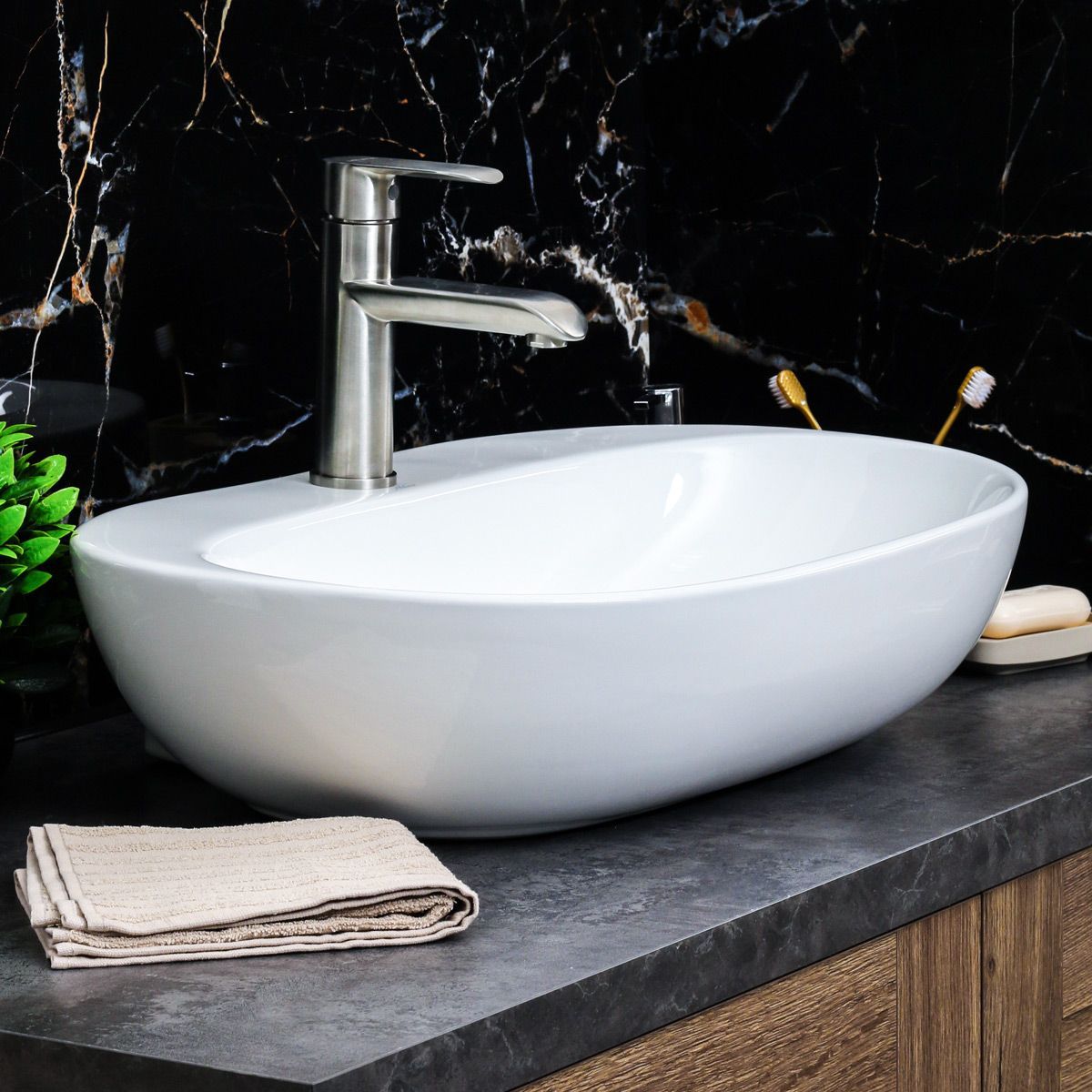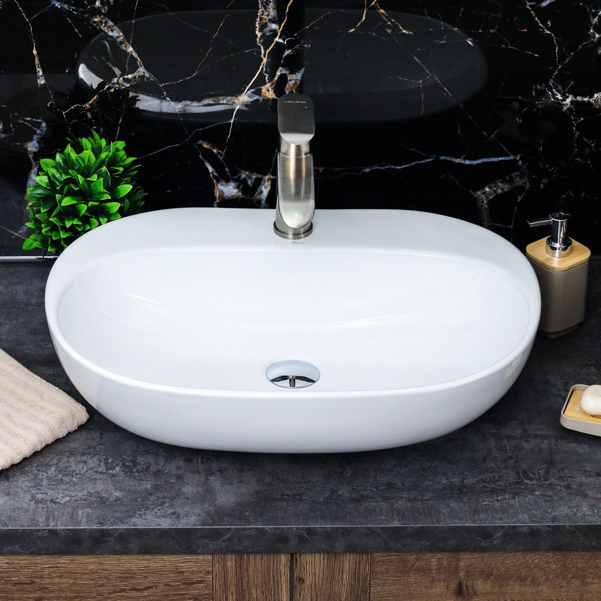 Раковина из сантехнического фарфора Melana 320327-805 60х41 накладная цвет белый 1 отверстие под смеситель
