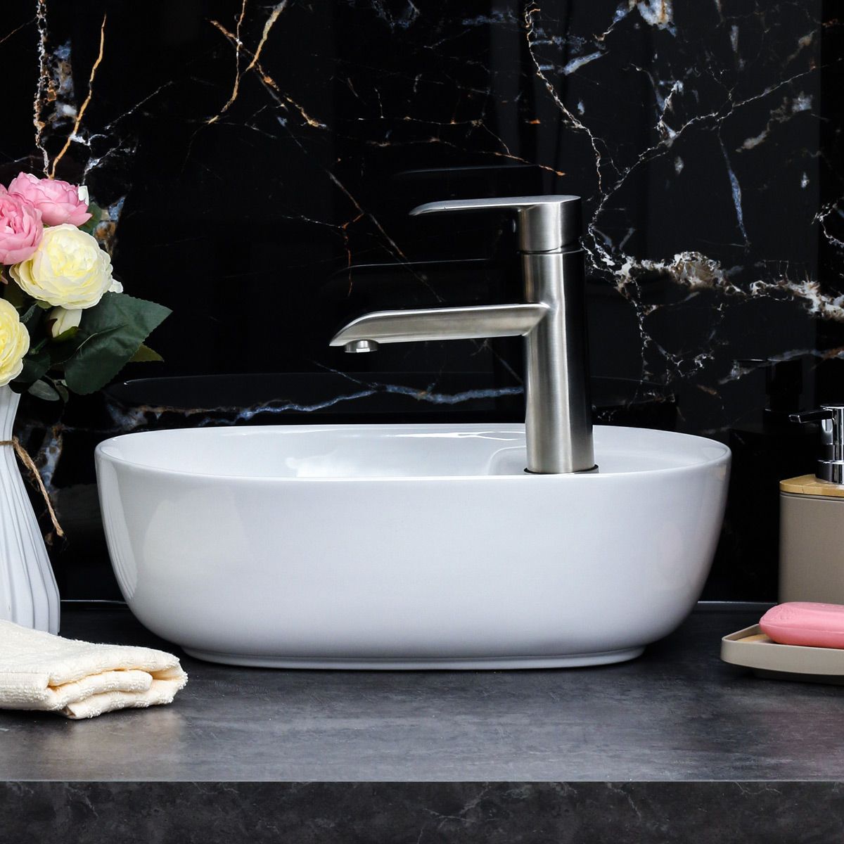 —Раковина из сантехнического фарфора Melana 320333-805 40х30 накладная цвет белый 1 отверстие под смеситель