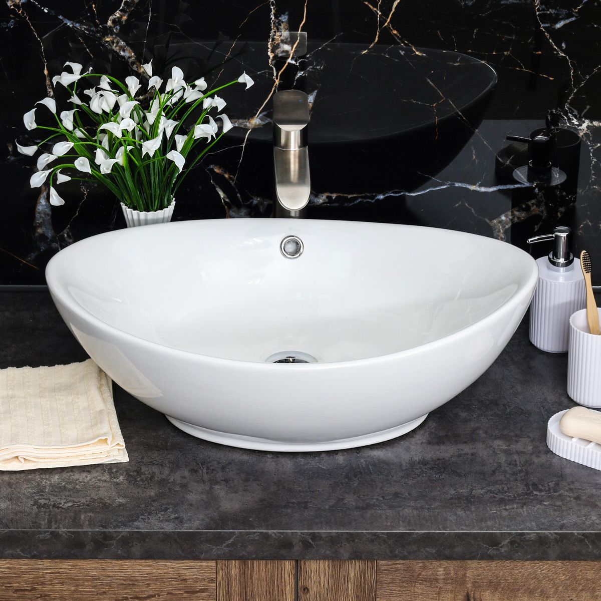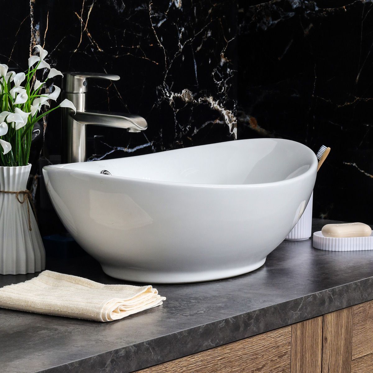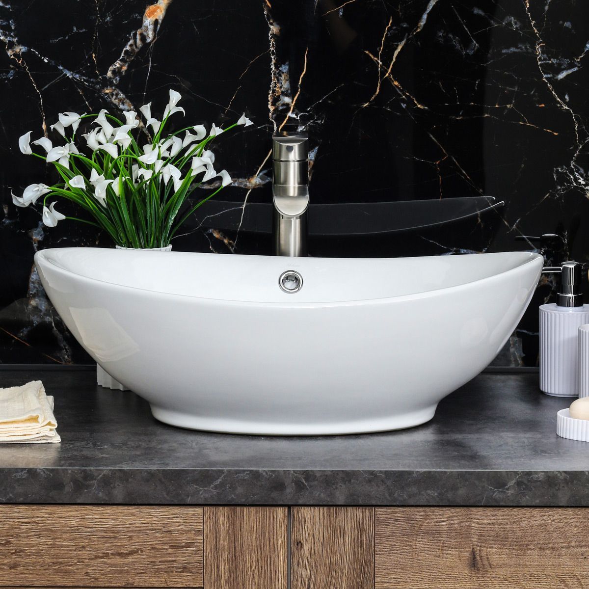 Раковина из сантехнического фарфора Melana 7027A-805 60х40 накладная цвет белый без отверстий под смеситель