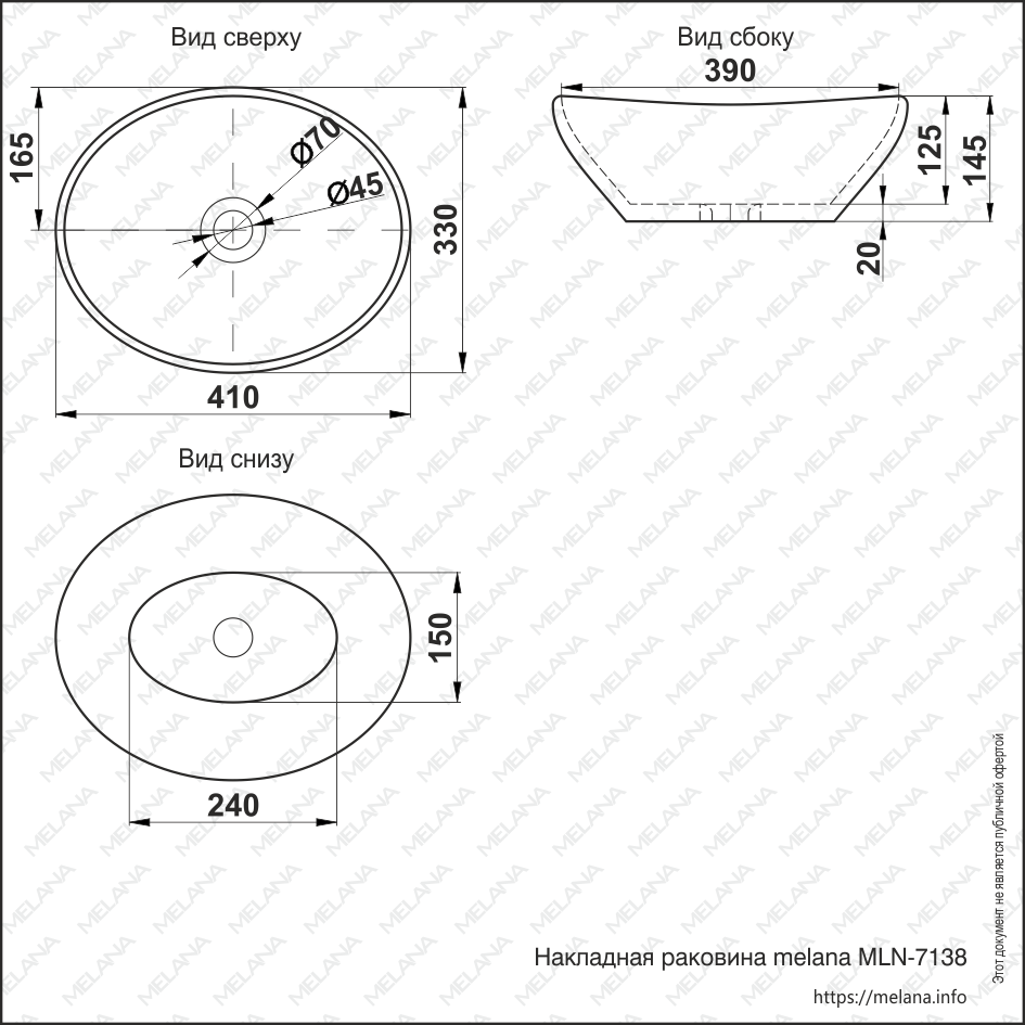 —Раковина из сантехнического фарфора Melana 7138-805 40х30 накладная цвет белый без отверстий под смеситель