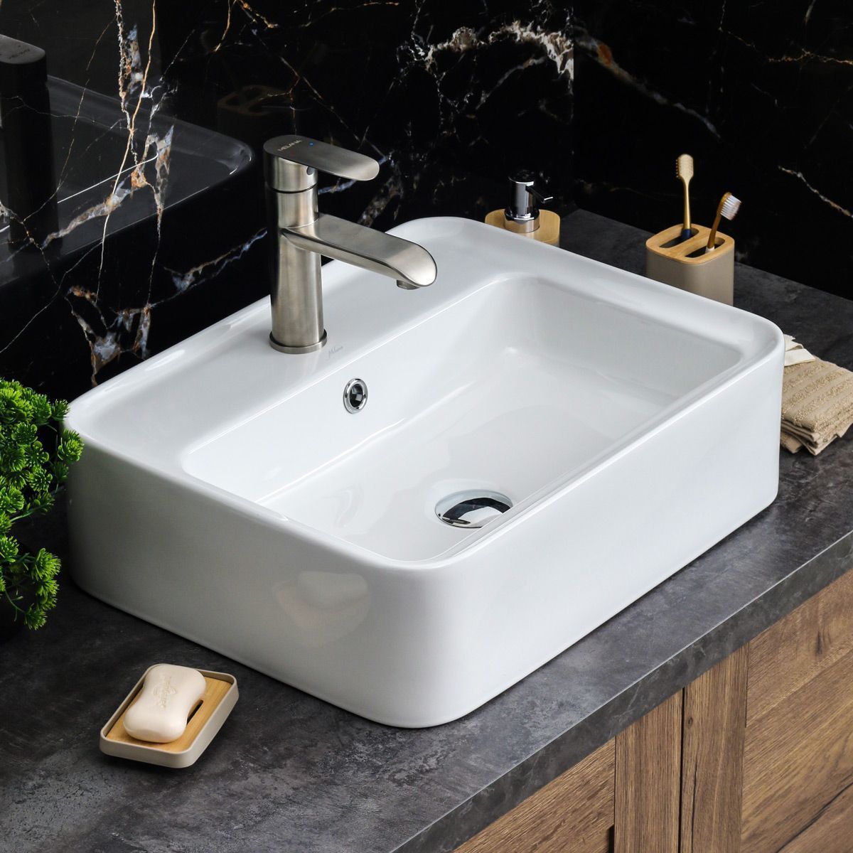 —Раковина из сантехнического фарфора Melana 78355-805 50х40 накладная цвет белый 1 отверстие под смеситель