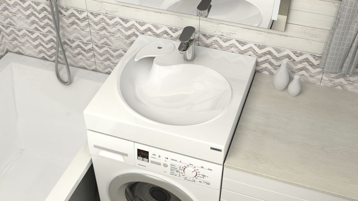Экономит пространство в небольших помещениях и придает ванной комнате оригинальный облик.
