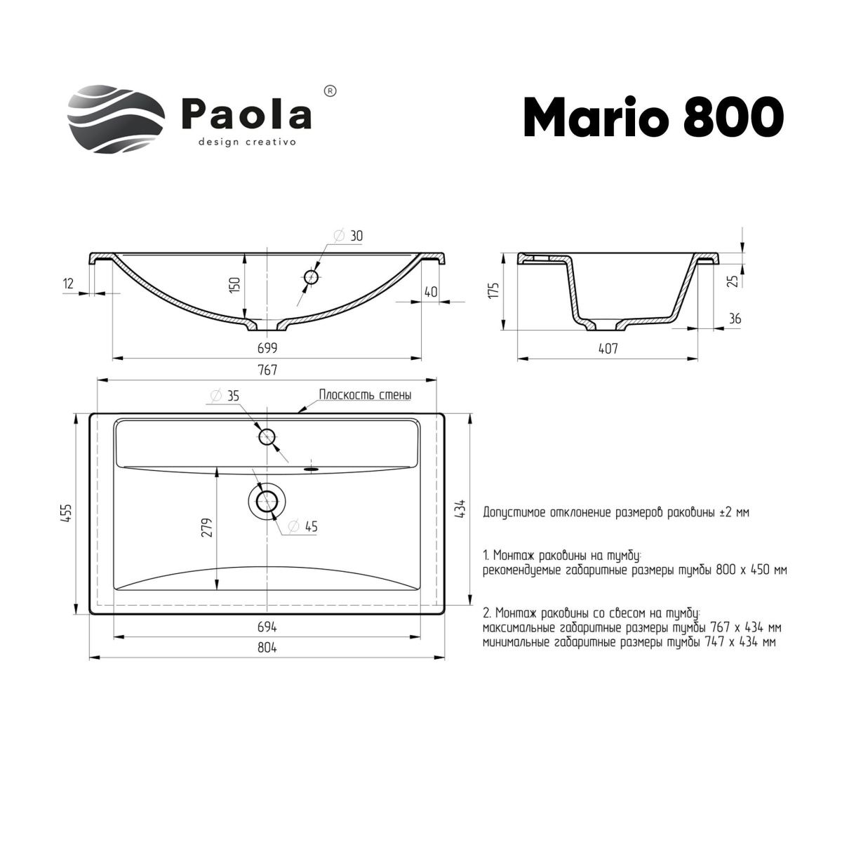 Врезная раковина Paola Mario 800 c возможностью  установки на тумбу со свесом или вровень. Современная, стильная, эргономичная. Раковина выполнена из прочного износостойкого литьевого мрамора, сверху покрыта специальным защитным покрытием гелькоутом. Исполнение поверхности Glossy Shine - изделие обладает глянцевым блеском, очень приятное на ощупь и даже при минимальном уходе сохраняет безупречный цвет и внешний вид на долгие годы. В комплекте слив-перелив, технический паспорт и гарантийный талон. Заводская гарантия составляет 5 лет, срок службы более 10 лет.