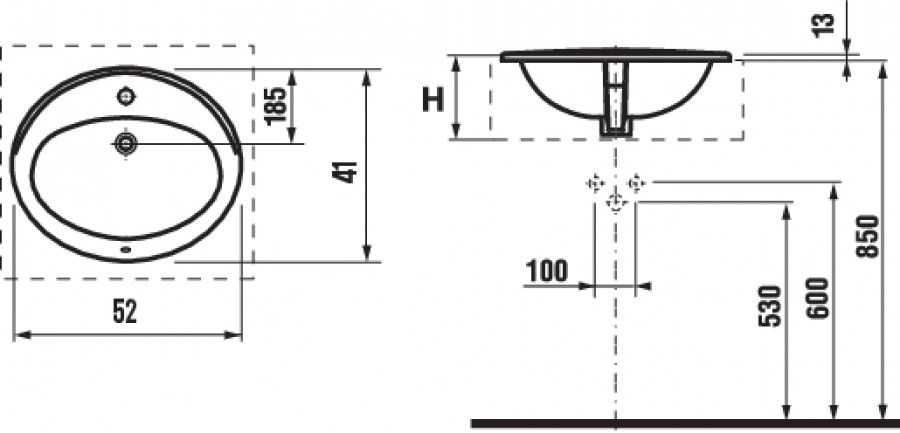 —Раковина из сантехнического фарфора Roca Adora 7327204000 50х40 встраиваемая цвет белый
