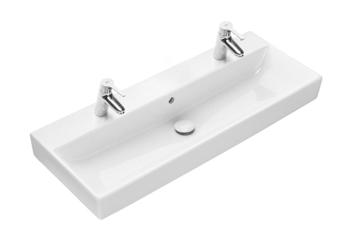 —Раковина из сантехнического фарфора Roca OLETA 7.3274.C.700.Y 100 см накладная цвет белый 2 отверстия под смеситель