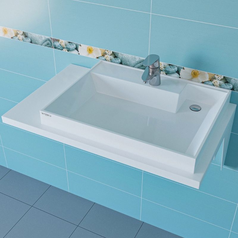Раковина из искусственного камня СанТа Юпитер 900129 90х50 над стиральной машиной цвет белый 1 отверстие под смеситель