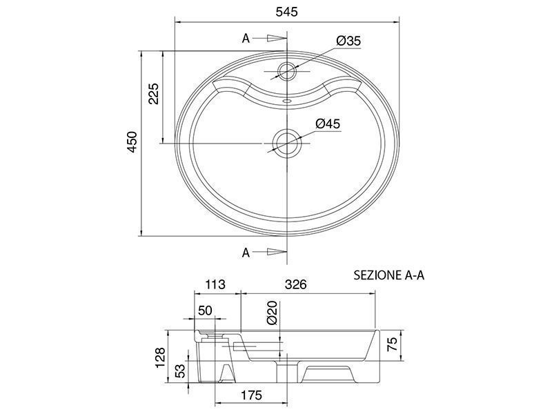 Раковина THIN-LINE 8030/R оснащена одним отверстием под смеситель и переливом, что делает ее использование удобным и практичным. Ее компактные размеры 54,5x45x13 см и овальная форма идеально подходят для установки на столешницу, что позволяет оптимально использовать пространство в ванной.