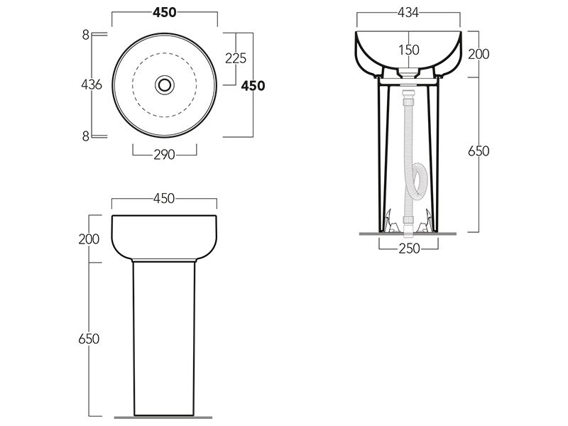 В комплект к раковине необходимо приобрести сифон, смесители и донный клапан. Донный клапан может быть белым под цвет раковины (арт. PLCE) или хромированным (арт. PLCR)