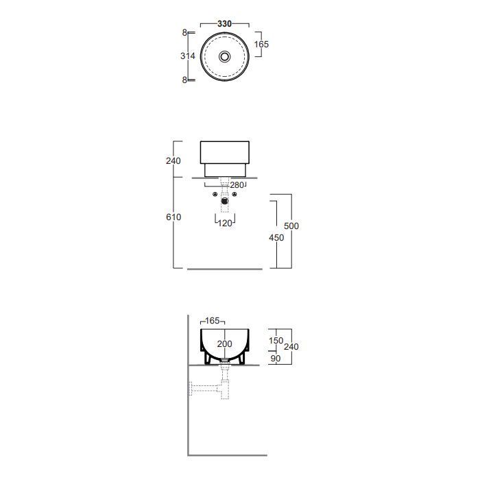 Раковина керамическая Simas Po-mo PO03bi 30х30 полувстраиваемая цвет белый без отверстий под смеситель
