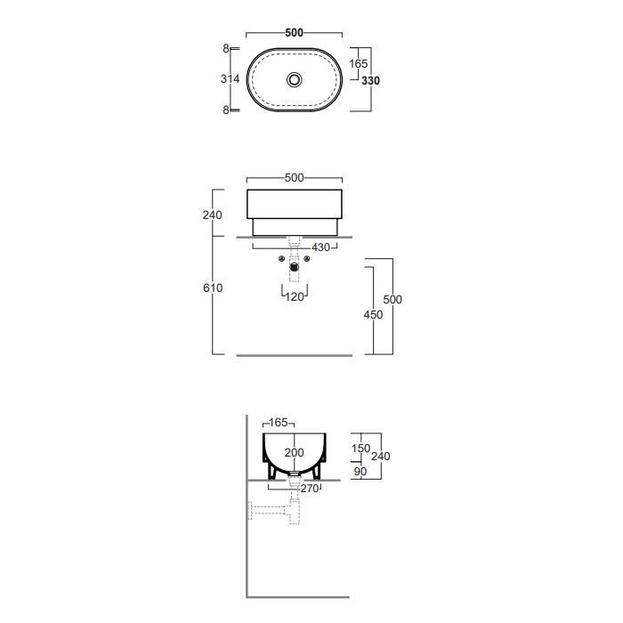 —Раковина керамическая Simas Po-mo PO04bi 50х30 полувстраиваемая цвет белый без отверстий под смеситель